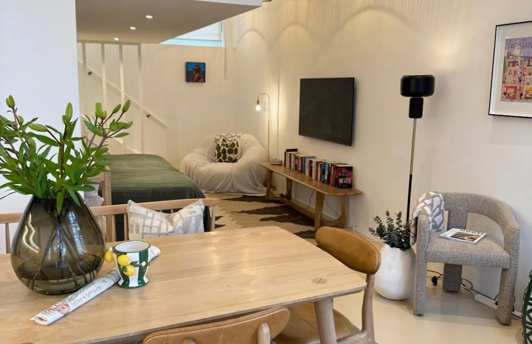 The apartment includes a seating area with air conditioning for utmost comfort. A highlight of the property for guests is the presence of a hair dryer and bath sheets in the bathroom. Furthermore, a separate toilet, a shower, and a washing machine is available.